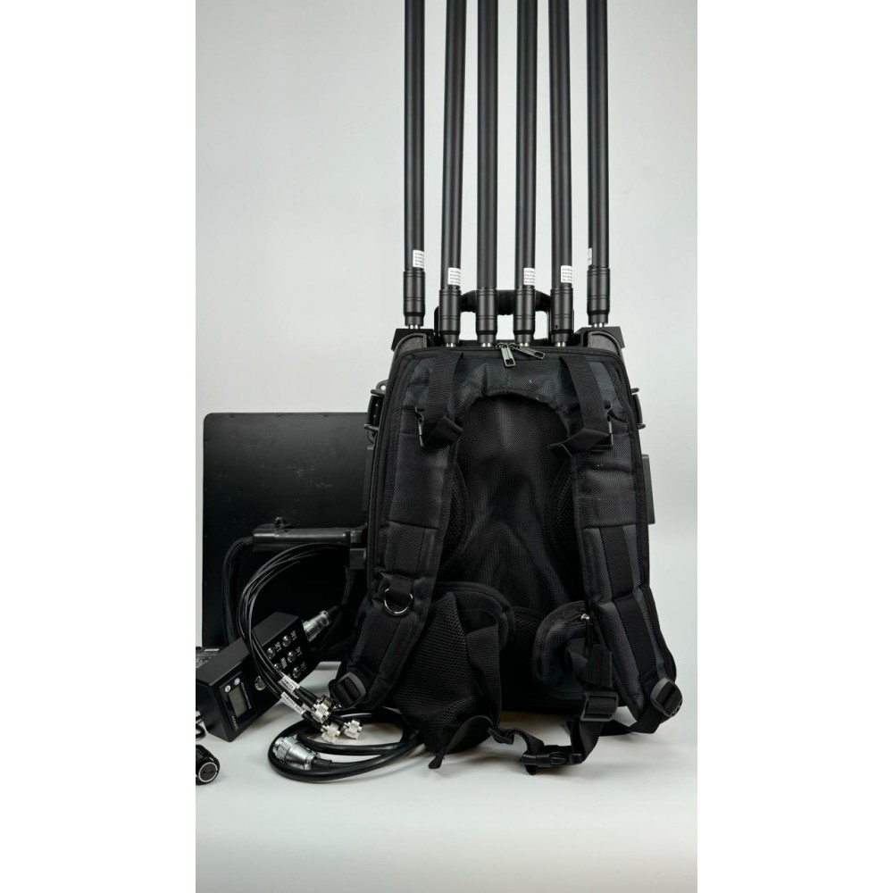 Рюкзак-подавитель оснащен всенаправленными антеннами, которые могут нарушать все частоты, используемые большинством коммерческих дронов. Это позволяет устройству создавать надежный защитный барьер, который блокирует радиосигналы дронов на расстоянии до 1.5 км.