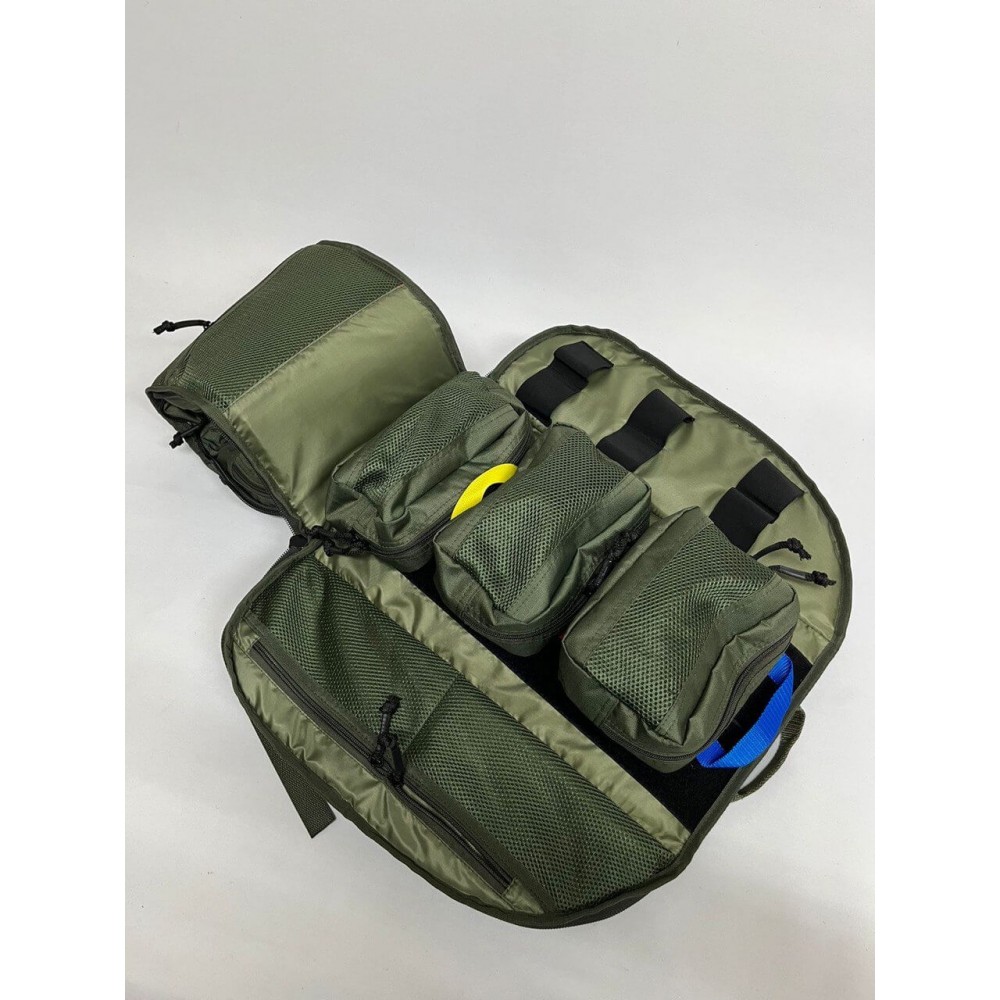 Рюкзак изготовлен из ткани Cordura® 500D от Invista® и оснащен молниями YKK® и пластиковой фурнитурой Duraflex®. Это гарантирует его прочность и долговечность. Рюкзак обладает множеством карманов и креплений для хранения медицинских принадлежностей, проводов, зарядных устройств и других необходимых предметов.