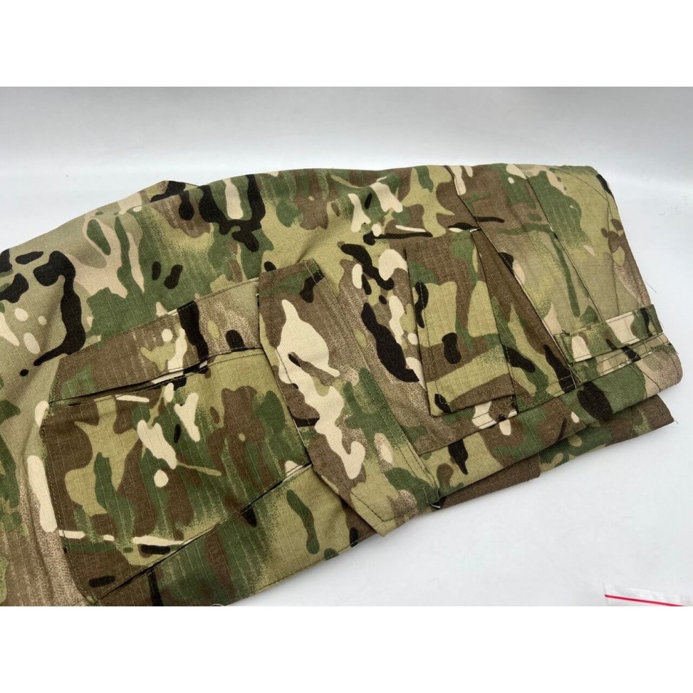 Тактические брюки в комплекте изготовлены из летней ткани RipStop (65% полиэстер, 35% хлопок). Они имеют защиту от травм коленных суставов. Размер талии, полноту штанин и ширину нижних манжетов можно регулировать с помощью застежек на ленте Velcro (липучках). Широкая ластовица обеспечивает комфортную посадку.