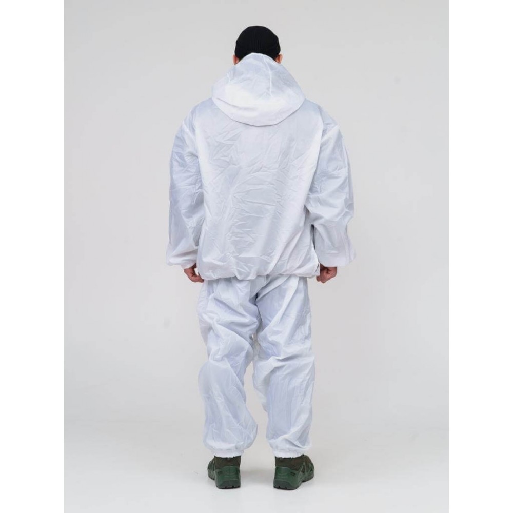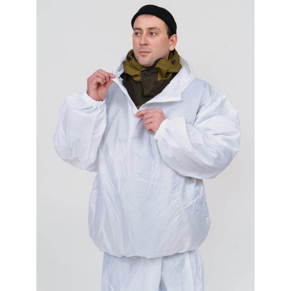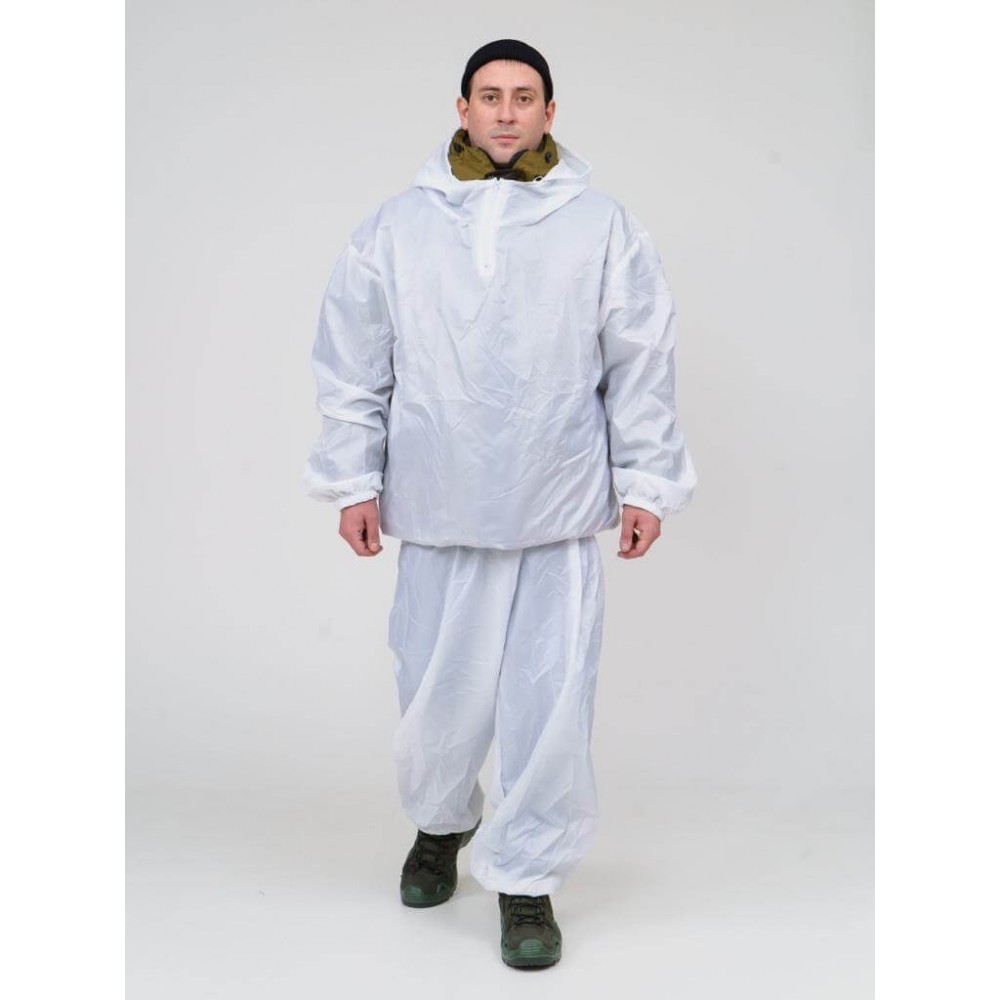 Зимний белый маскировочный костюм с капюшоном в Калининграде представляет собой идеальное решение для эффективной маскировки в зимних условиях. Этот костюм предназначен для использования в сочетании с основным зимним или демисезонным костюмом, где куртка надевается сверху через голову, а штаны надеваются как обычно.